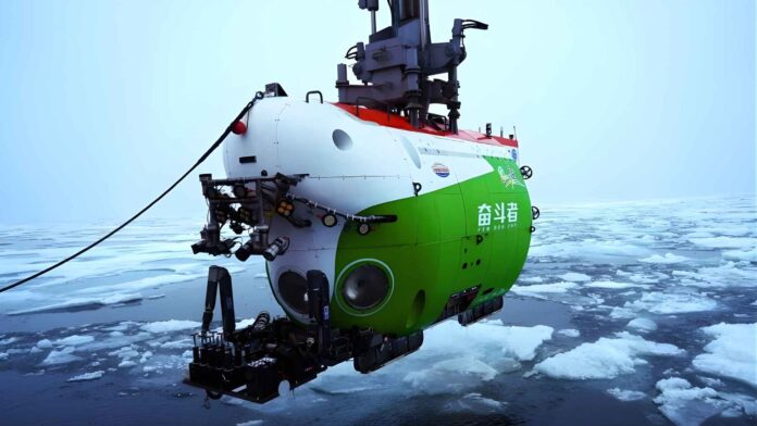 To reach the ridge safely, the Ministry of Natural Resources and the Chinese Academy of Sciences ran a joint Arctic mission pairing Fendouzhe with the ice-capable research ship Tan Suo San Hao. The report describes a ship-submersible coordination method that let the crew work where sea ice covered over 80 percent of the water and Fendouzhe completed 32 dives.